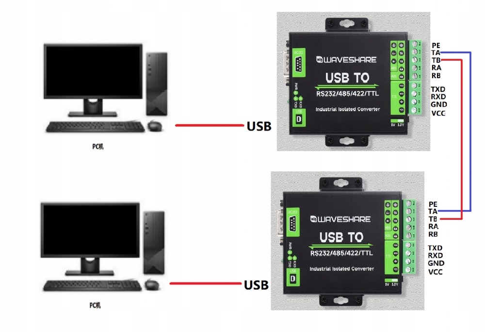 USB -конвертер на RS232/485/422/TTL USB на RS485 WaveShare