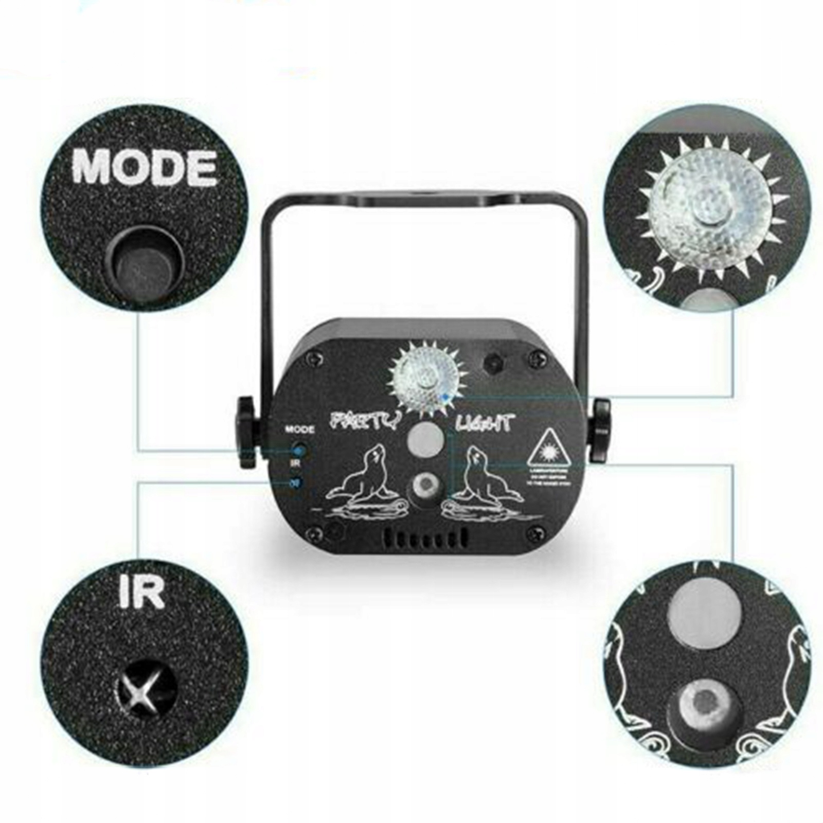 Світло Джерело: СВ. , KTV, події, банкетки, шоу, весілля тощо. Світло-розетка, протилежно, це може спричинити дискомфорт очей. Продукт підходить для використання в кімнатах, а рівень його захисту - IP20. Підходить для сухого середовища, уникайте використання вологого, перегрітого та запиленого середовища. > 1x Сценічне освітлення
