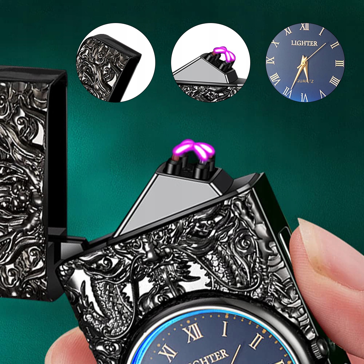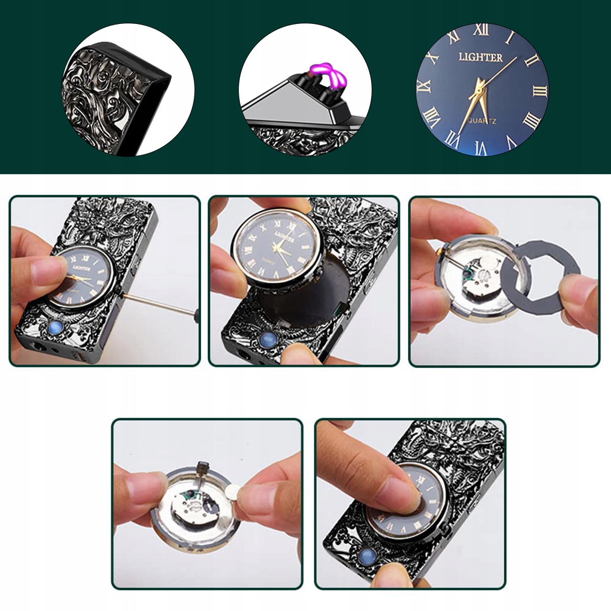 ◀◀ Цей електричний запальничка має інтегрований годинник, що робить його практичним та стильним аксесуаром. Завдяки цій додатковій функції вона не тільки легша, але й справді універсальна для щоденного використання.