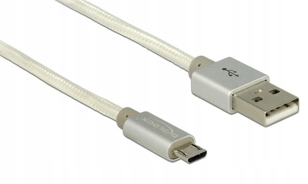 Кабель USB Delock можна підключити до стандартного інтерфейсу USB. Таким чином ви зможете швидко та легко заряджати свій мобільний телефон за допомогою мікроінтерфейсу USB та передавати дані. Кабель виготовлено з текстильної оболонки, а роз’єми знаходяться в міцному металевому корпусі.