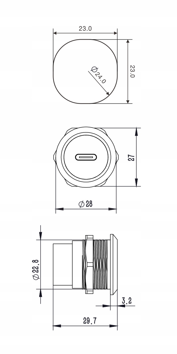 Гніздо USB Type C для монтажу на панелях і корпусах із додатковим захисним ковпачком.