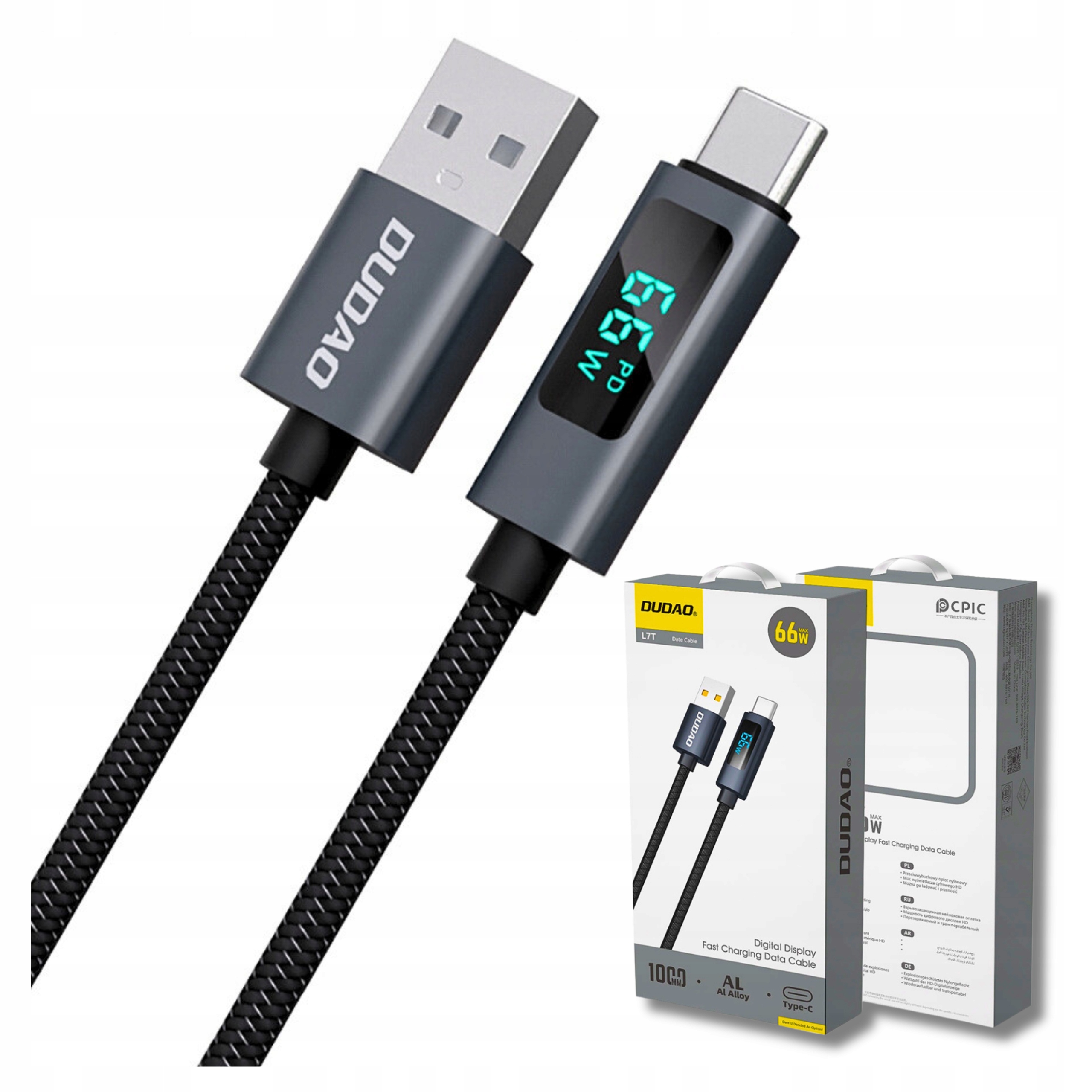 Dudao L7T USB-A CABLE-USB-C 66W з 1 м світлодіодним дисплеєм