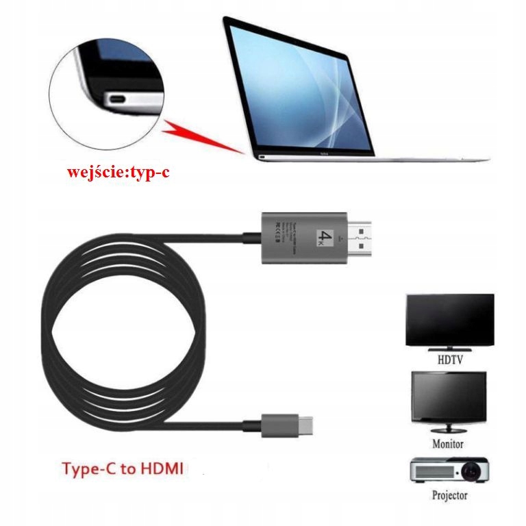 НОВИЙ Кабельний адаптер HDTV 4K USB 3.1 Type C USB-C – HDMI (стандартний) для Samsung Galaxy Note8, Note 9, S8, S9 Macbook