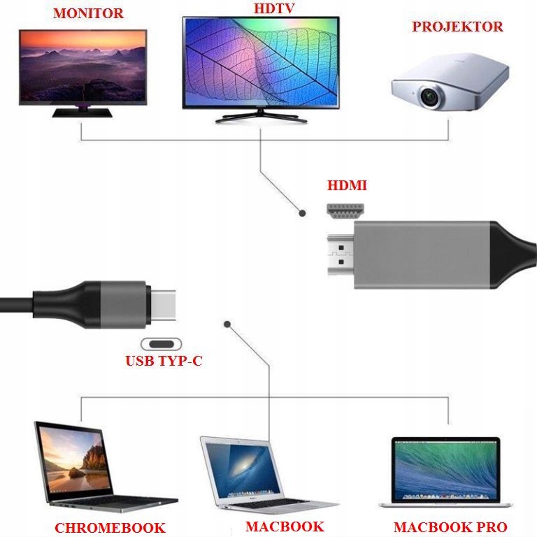 Кабель USB-C – HDMI дозволяє використовувати USB-порт типу C на вашому комп’ютері для безпосереднього відображення зображення на екрані HDMI без потреби у складних адаптерах і ключах або адаптерах.