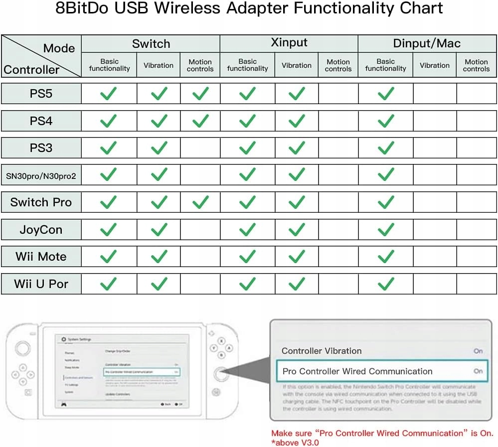 - Широкий діапазон сумісності: співпрацює з усіма контролерами Bluetooth 8bitdo та Arcade Sticks, Xbox One Bluetooth, PS5 DualSense Dualshock 3, Dualshock 4, Dualshock 4 Pro, Wii Demote, Wii U Pro, Switch Joy-Con Pro Con
