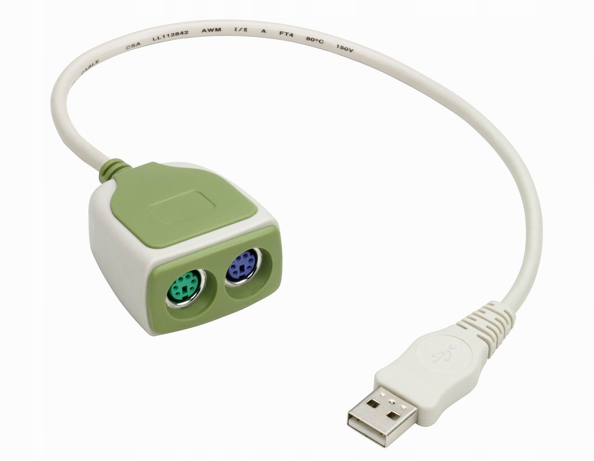 - високоякісний адаптер USB A на 2 x PS/2 (клавіатура + миша), овальний, зелений із слоновою кісткою.