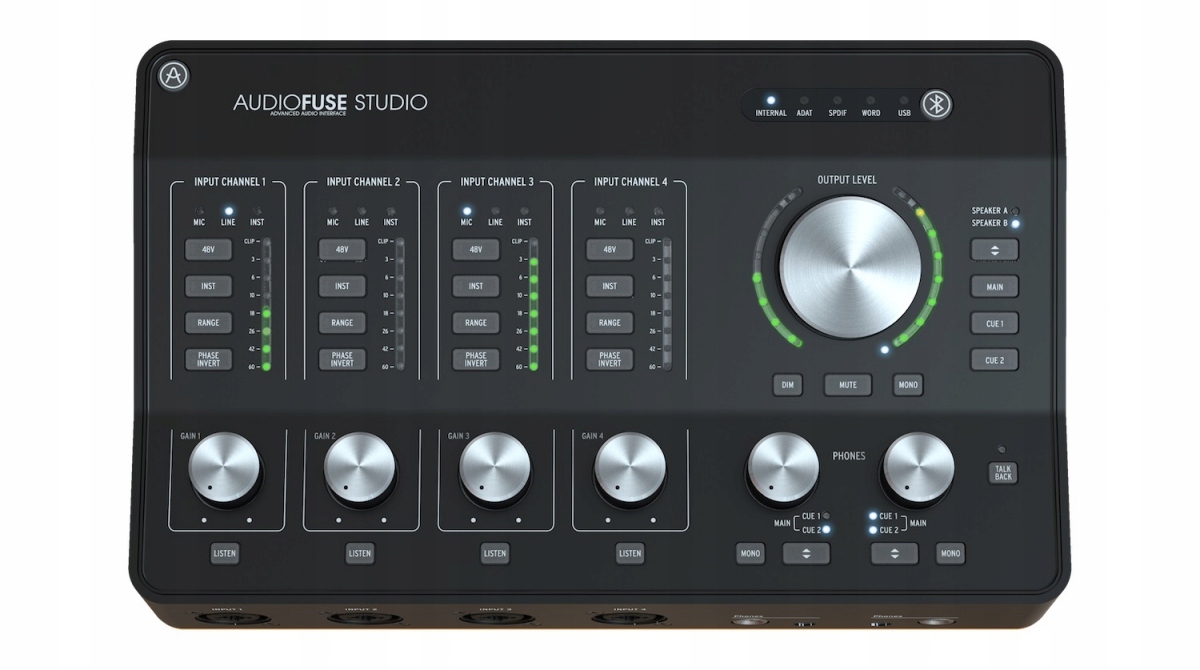 Arturia AudioFuse Studio — це професійний аудіоінтерфейс USB наступного покоління для студій звукозапису та створення музики. Оснащений 4 попередніми підсилювачами DiscretePRO©, перетворенням 24 біт/192 кГц, Bluetooth Audio та багатим набором роз’ємів, він забезпечує кристально чистий звук, прослуховування без затримок і повний контроль над записами. Ідеально підходить для музикантів, продюсерів і подкастерів.