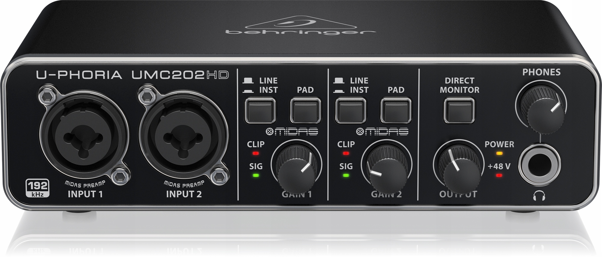 Behringer U-PHORIA UMC202HD - аудіоінтерфейс 2x2 USB 2.0, призначений для запису інструментів і використання мікрофонів.