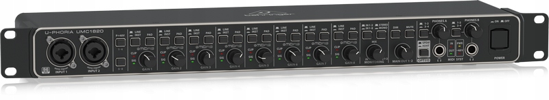 Behringer U-PHORIA UMC1820 – аудіофільський клас, 18 x 20 USB Audio/MIDI-інтерфейс із високою роздільною здатністю 24-біт/96 кГц, з 8 попередніми підсилювачами MIDAS, призначений для запису мікрофонів та інструментів.