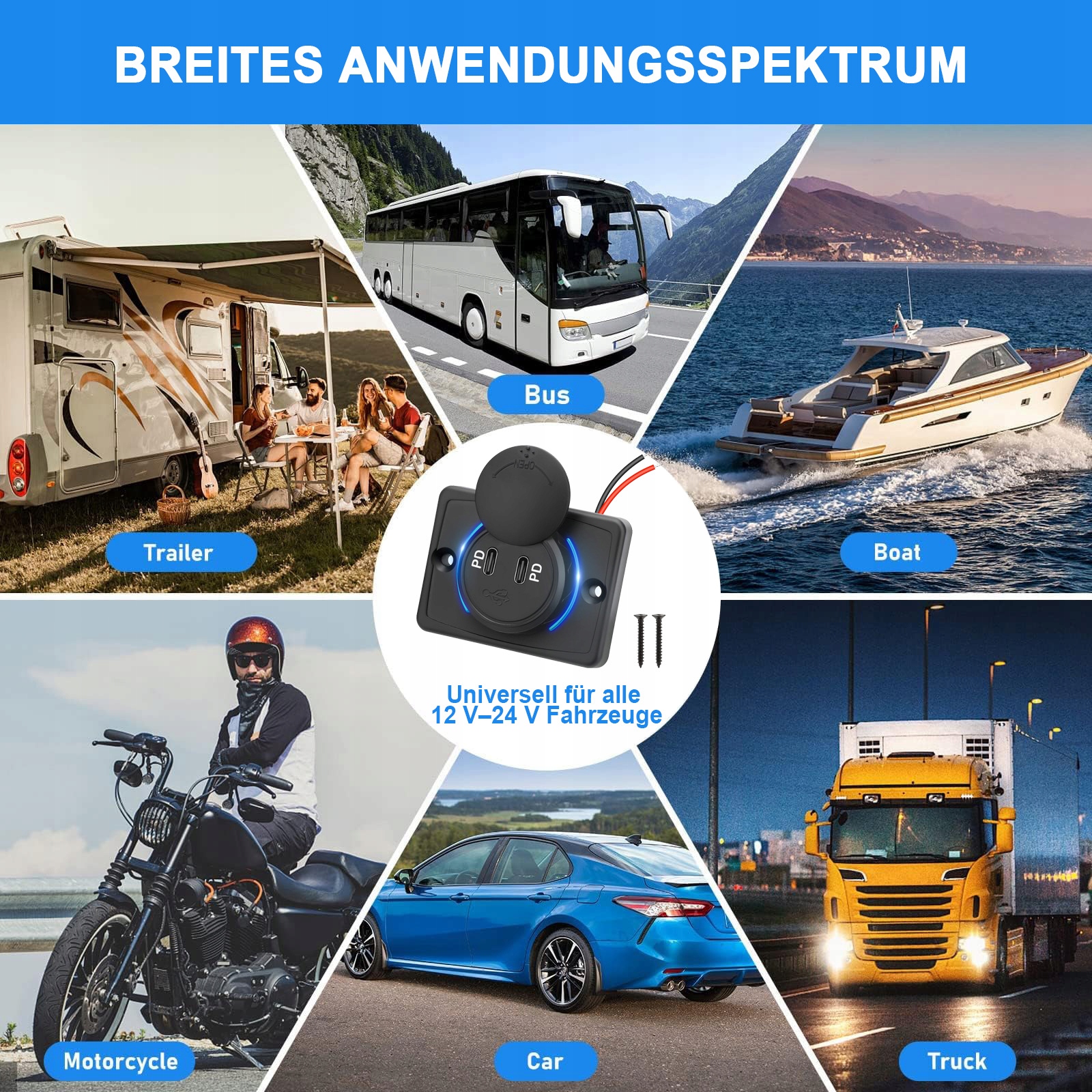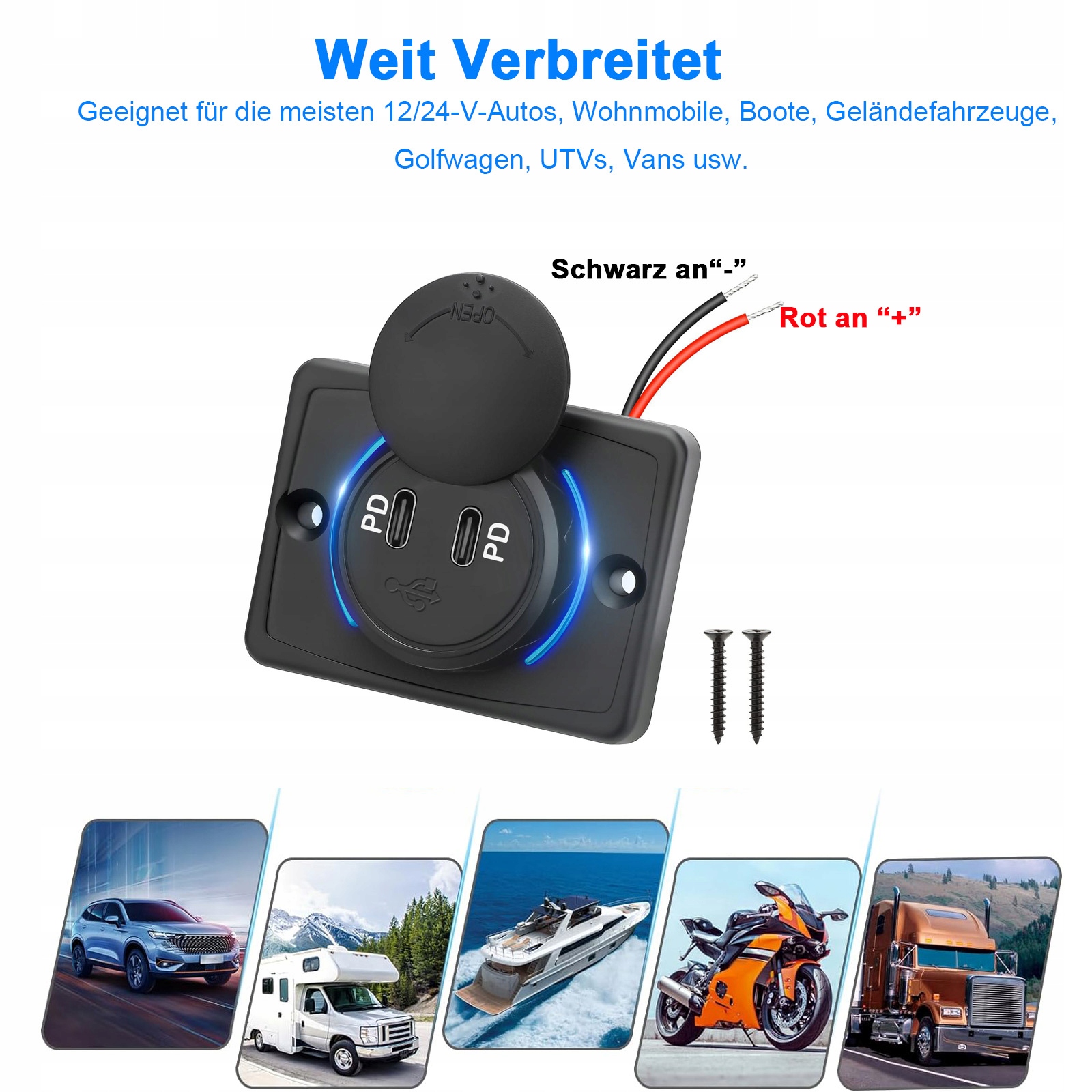 USB C 12 V/24 В Двічі розетки для завантажувача автомобілів USB-C