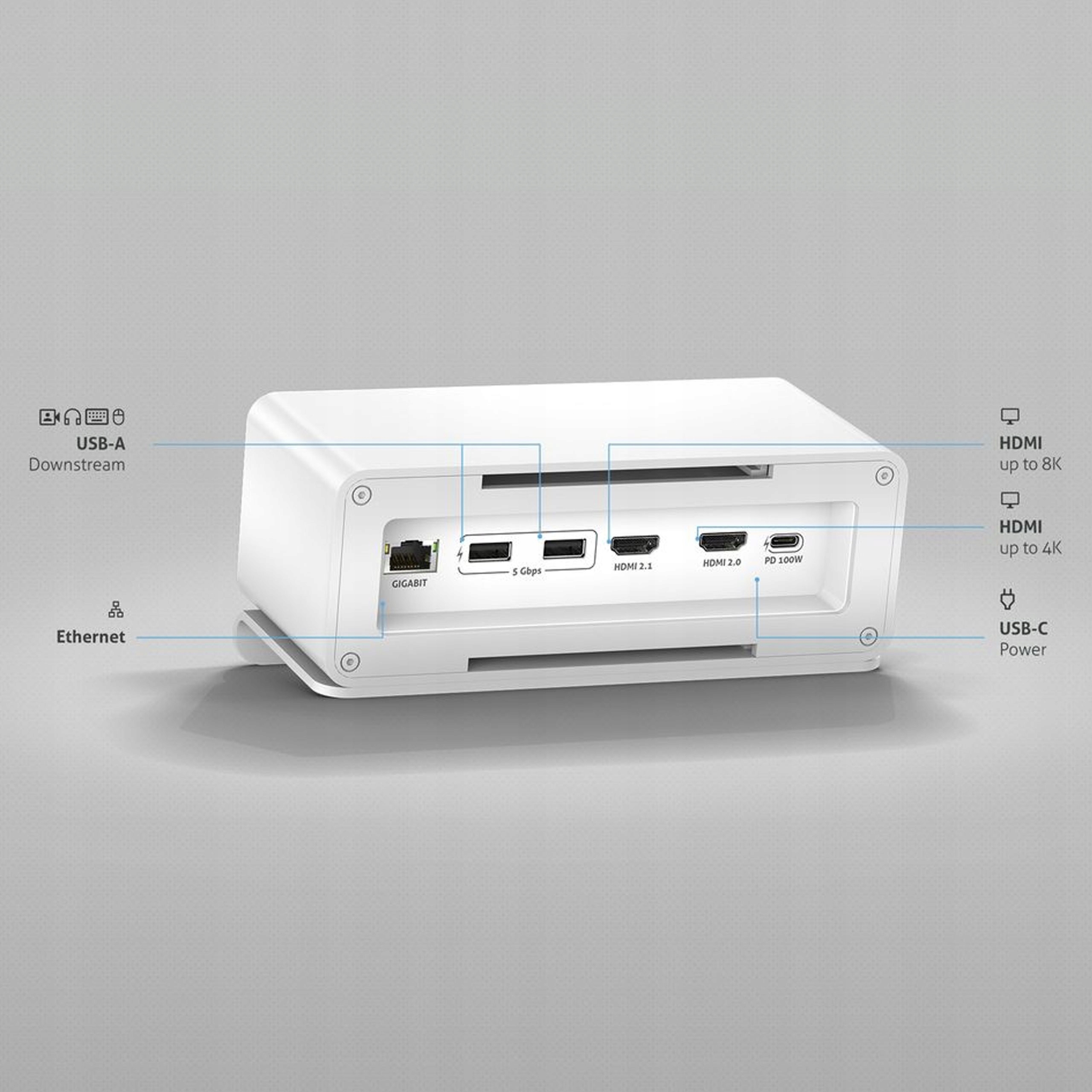 Додаткові роз'єми Gigabit Ethernet , USB -тип A , USB -тип C та USB доставка електроенергії з потужністю до 100 Вт Забезпечте Висока швидкість передачі даних та Ефективні зовнішні пристрої Charging .