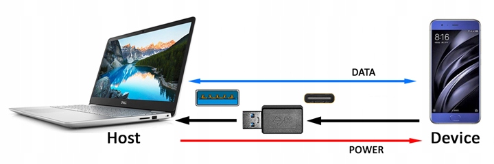 Найпоширенішим застосуванням адаптера є підключення зі смартфоном USB/C-USB/C до комп'ютера для зарядки та надсилання даних.