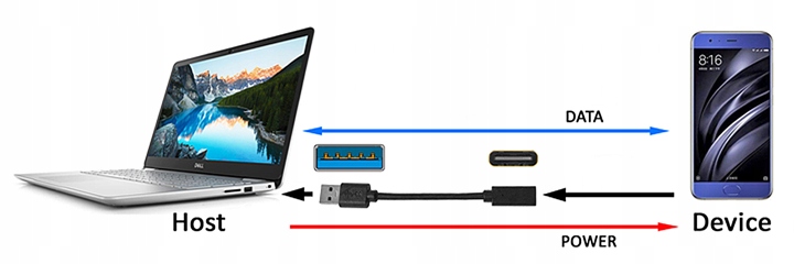 Крім того, кожна з вищезазначених версії може (але не повинна) мати режим доставки електроенергії, тобто можливість потужності, що постачає двосторонню передачу. Тому виробники кабелів з метою оптимізації витрат намагаються відповідати їх продукції до впроваджених функцій (немає сенсу використовувати дорогий кабель Thunderbolt для підключення смартфона до 5 В зарядного пристрою). Перш ніж купувати електропроводку, тому необхідно визначити, для чого він повинен бути використаний, перевірити, чи реалізована задана функціональність у нашому обладнанні та перевірити, чи купується адаптер/кабель виконує цю функціональність. На жаль, більшість виробників не означають функціональність портів USB-C у виготовлених пристроях (виняток-це блискавка, що означає інтерфейс Thunderbolt), тому це слід перевірити в специфікації обладнання. USB-C (смартфон, планшет, портативний диск тощо) для комп'ютера з розеткою USB-A для передачі даних та джерела живлення.