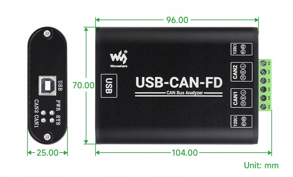 - Підтримка перетворення протоколу між USB і шиною CAN/CAN FD.