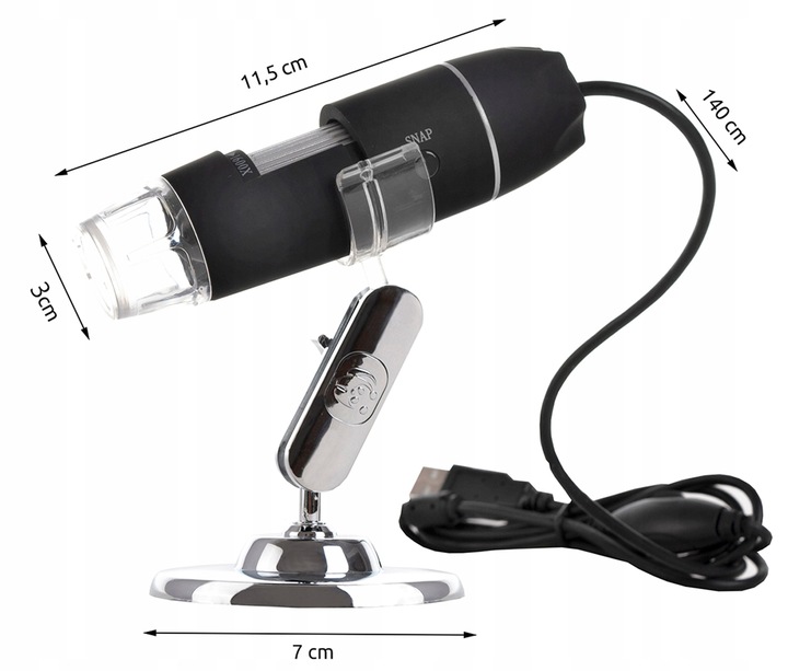 Цифровий мікроскоп з живленням від USB. Після підключення до комп'ютера або ноутбука ви можете збільшувати масштаб екрану, фотографувати і записувати відео, налаштовувати графічні фільтри. Використання пристрою дозволить вам бачити речі, які неможливо побачити неозброєним оком, наприклад комах, рослини, тканини, матеріальні структури тощо.