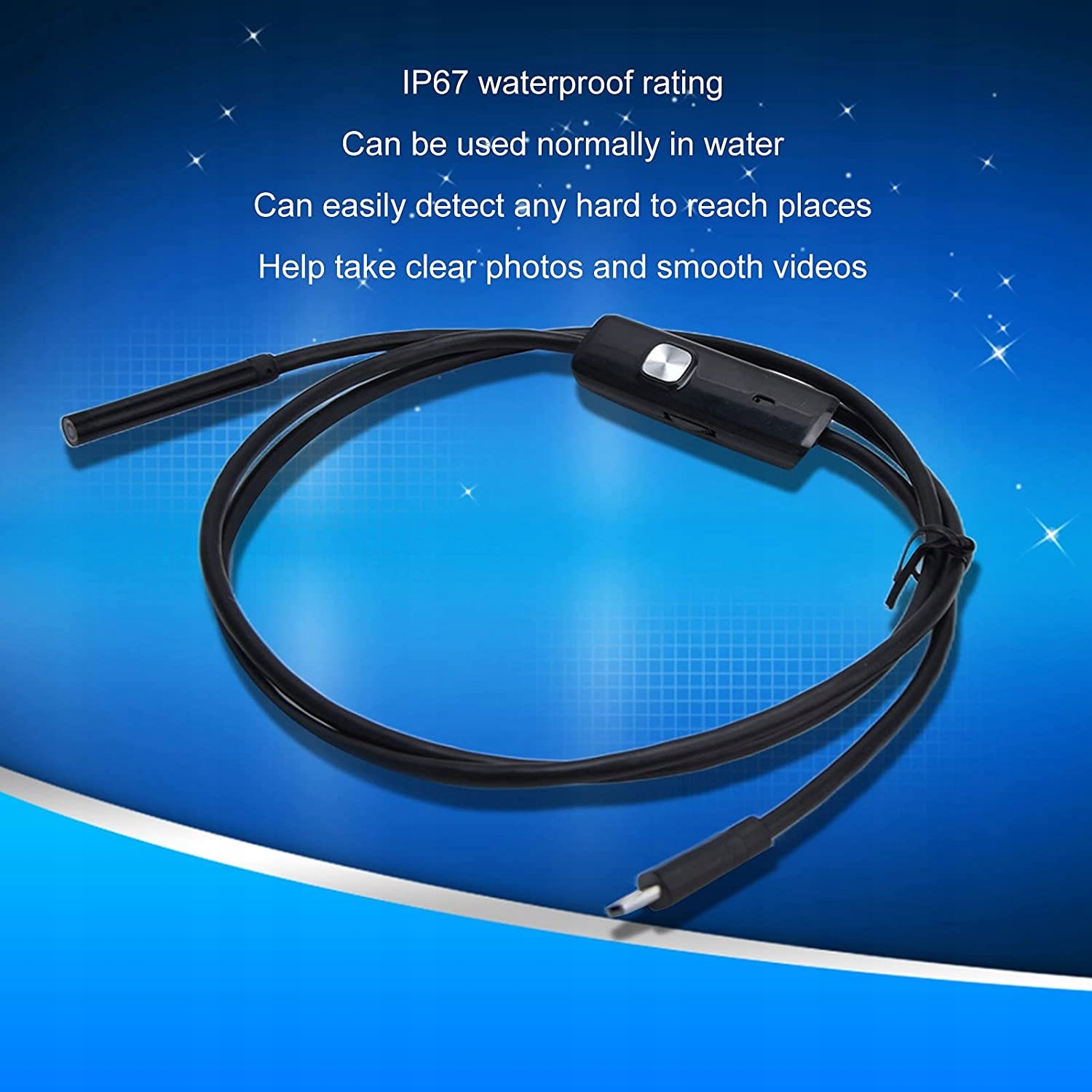 Сценарій застосування За допомогою нашого ендоскопа ви можете перевірити свою побутову техніку, електронне обладнання, перевірити проблеми з салоном автомобіля або знайти дрібні речі, які потрапили у недоступні місця. Основні технічні дані Це маленька, легка та портативна ендоскопічна камера. Світлодіодні кульки Ендоскоп оснащено 6 світлодіодними кульками, які можна використовувати в темних умовах. Функція водонепроникності Ендоскоп є водонепроникним за стандартом IP67 і його можна використовувати навіть у воді. Чітка зйомка Камера ендоскопа легко виявляє будь-які складні місця, допомагаючи вам робити чіткі фотографії та плавні відео.