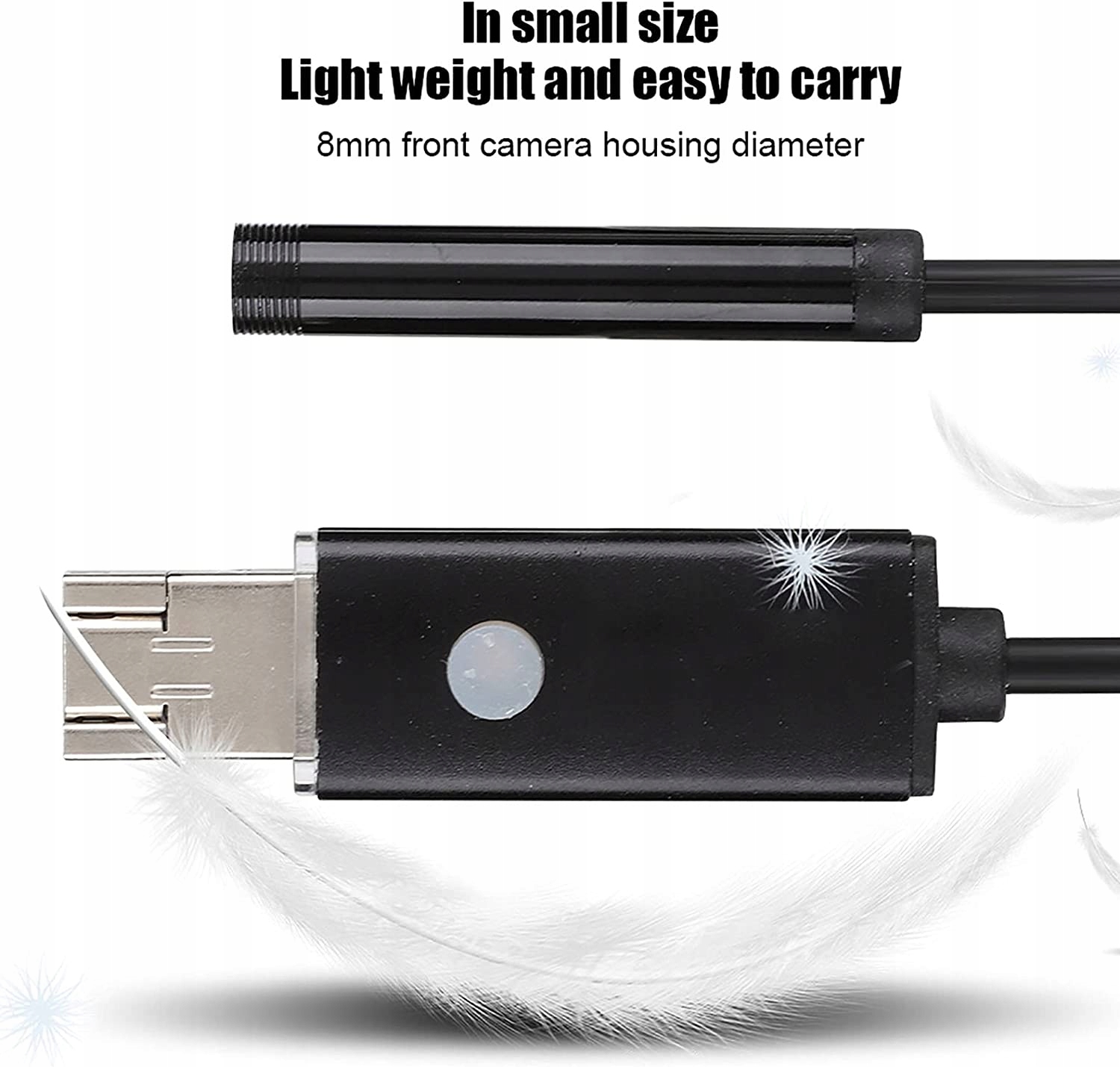 Такий ендоскоп можна записувати протягом усього процесу перевірки, щоб полегшити подальше спостереження та аналіз. Завдяки невеликим розмірам і легкій вазі діаметр корпусу передньої камери цього ендоскопа становить 8 мм. І коли зображення зроблено, його камера безпосередньо фотографується та зберігається на його телефоні Android. Він оснащений 8 високояскравими світлодіодами, які можна вмикати та вимикати, що не впливає на нормальну роботу ендоскопа. Цей ендоскоп дозволяє проводити вимірювання трубопроводів, устаткування, монтажного обладнання, підводного огляду, складальних частин, будівельних майданчиків, майстерень, лабораторій, освіти, моніторингу дикої природи, ремонту та технічного обслуговування транспортних засобів та Важкодоступна зона – це дістатися до місця, тоді як його 8 світлодіодних ліхтарів може досягати більшості місць. Завдяки гарному зовнішньому вигляду та простоті у використанні світло можна вмикати та вимикати, що дуже практично.