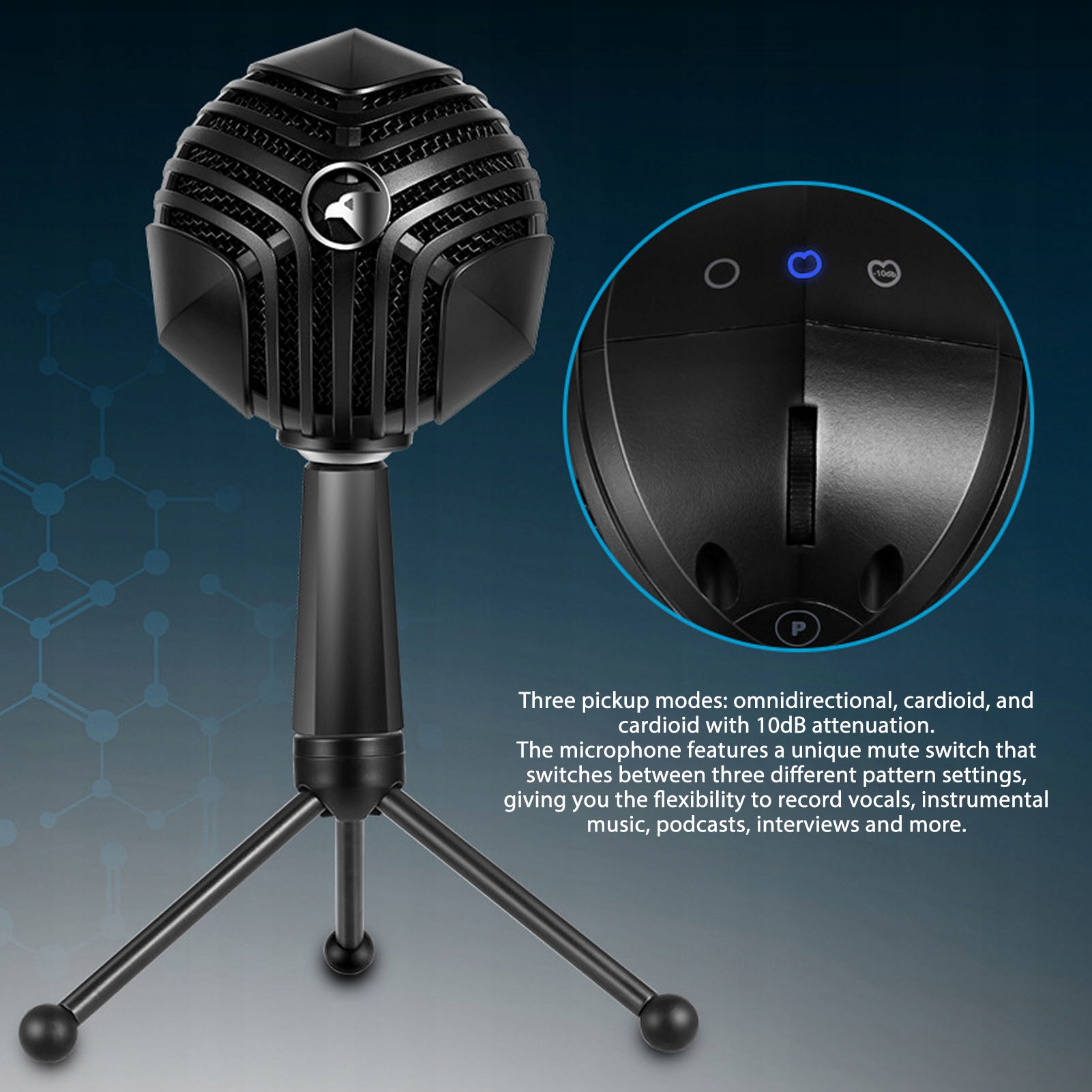4. Проста експлуатація: Конденсаторний мікрофон оснащений функцією вимкнення звуку однією клавішею та світлодіодним індикатором, яким легко та зручно керувати. Між тим, він також підтримує функцію виходу на навушники та регулювання гучності навушників.