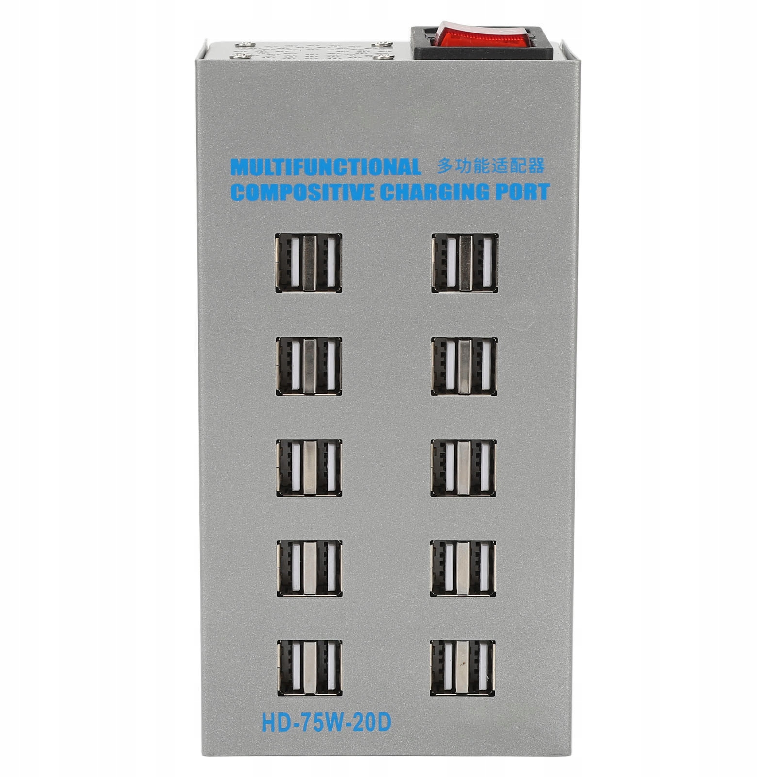 Багатофункціональний USB-концентратор із живленням, 20 портів із нержавіючої сталі, USB-розгалужувач із зарядним портом