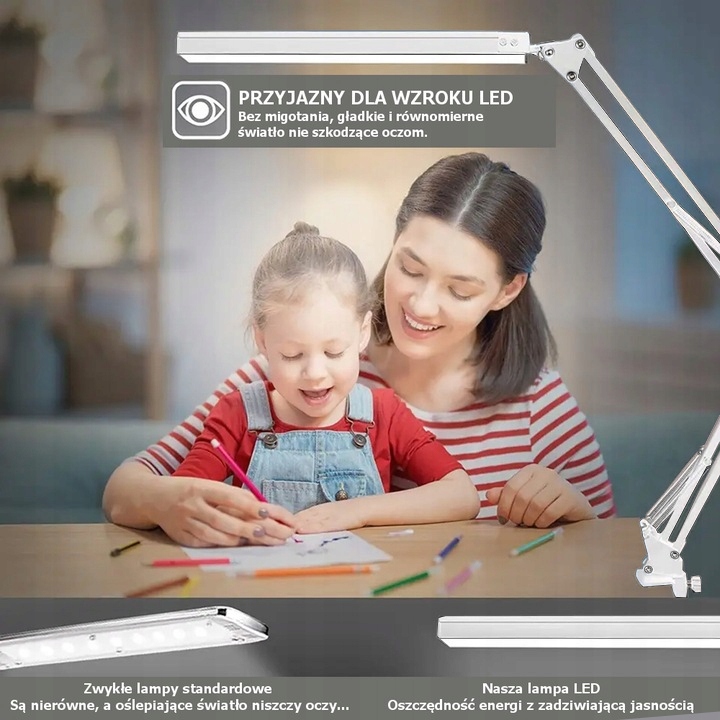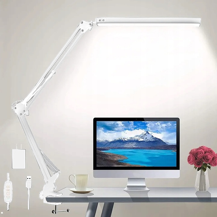 Настільна лампа є незамінним елементом нашого існування, яке може бути корисним у багатьох моментах нашого життя - для навчання, роботи чи читання. Ми можемо використовувати настільну лампу в майстерні, гаражі або навіть на кухні. Він має 80 світлодіодів, інтегрованих в одному місці з сучасною електронною системою, яка забезпечує високу потужність з низьким енергоспоживанням. Лампа має обертовий кронштейн, функцію перемикання пам'яті та роз'єм USB. Настільна лампа має 3 кольори світла та 10 рівнів яскравості.