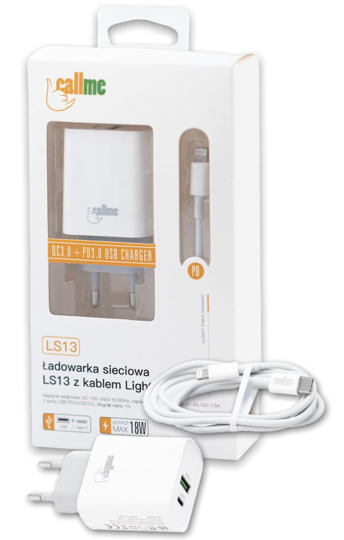 Сильний і швидкий зарядний пристрій USB-C PD з кабелем Typ-C та блискавкою марки польської марки CallMe.