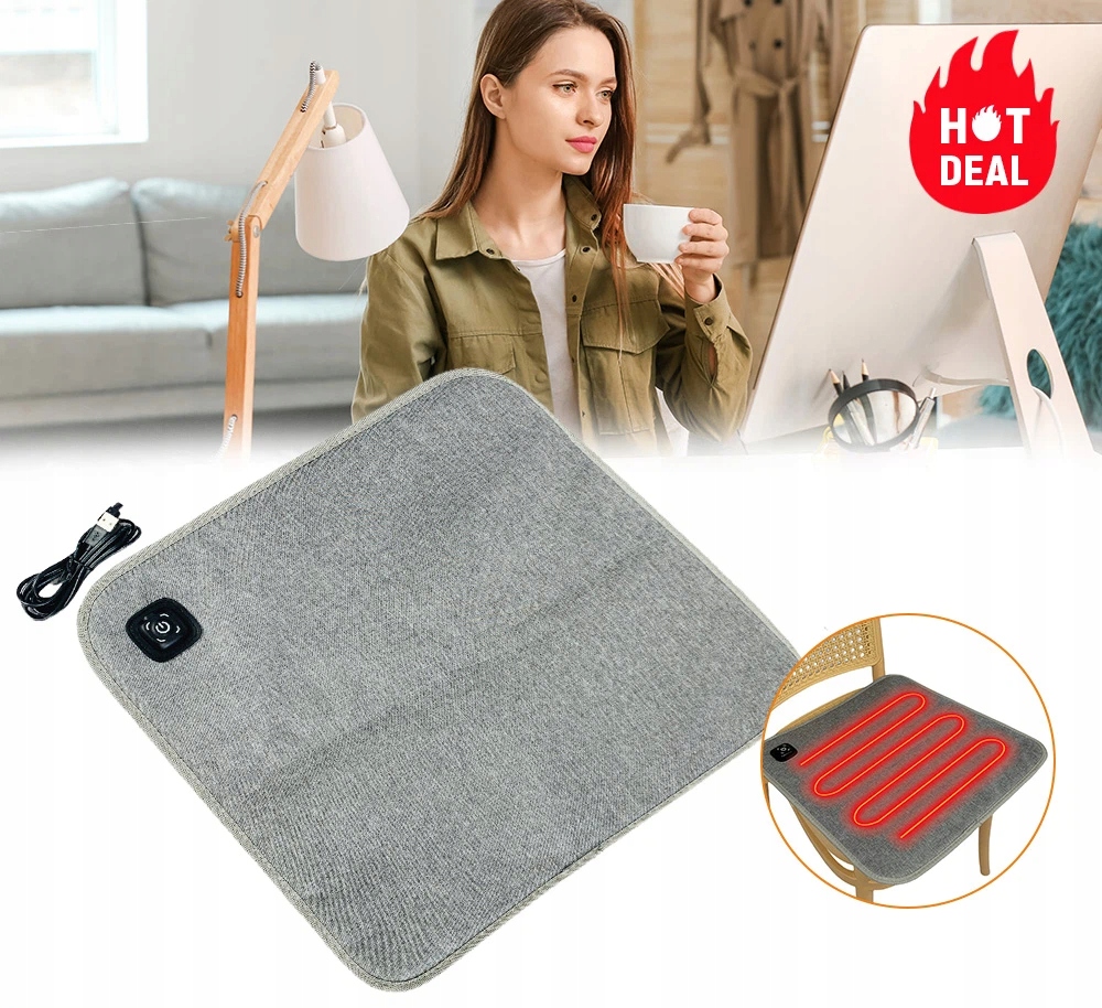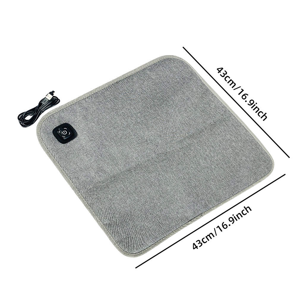 Виготовлена з водонепроникної тканини Оксфорд (сірого кольору), вона міцна та стійка до щоденного використання. Розміри 43х43см,з площею центрального опалення 30х30см - ідеально підходить для офісних крісел, автомобільних крісел, столів вдома або на стадіоні. Знімає скутість м’язів спини, стегон і живота – ідеально підходить для людей, які довго сидять, працюють у холодних офісах або шукають додаткового комфорту.