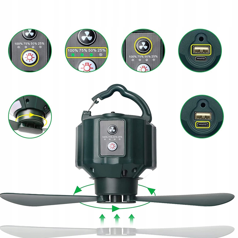 - Наш кемпінговий вентилятор має міцний корпус з ABS та вентиляторним лезом, що запобігає падінню ліхтарика кемпінгу та пошкодження його зовні.