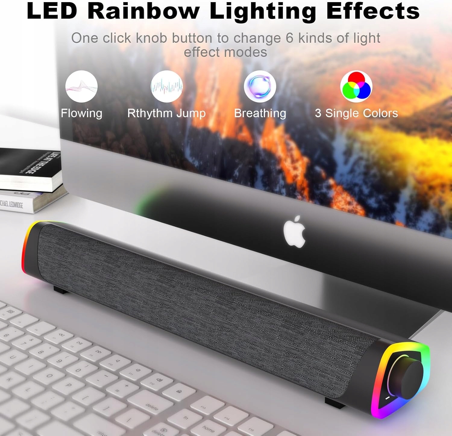 r30 плюс комп'ютерні динаміки пропонують підключення Bluetooth та підсвічування RGB з 6 світлими ефектами. Надайте чистий і сильний звук.