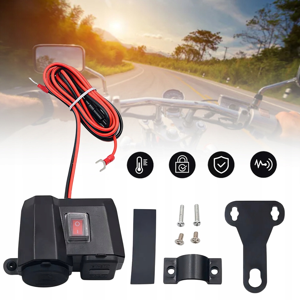 порти зарядки USB (5 В/2.1 а) і дозволяє одночасно заряджати два пристрої. Ідеально підходить для мотоциклів, автомобілів або вантажних автомобілів, забезпечує надійне та водонепроникне рішення для ваших потреб, пов’язаних з мобільною зарядкою. Завдяки цьому ви завжди маєте електричну безпеку вашого автомобіля. Ідеально підходить для використання в мотоциклах або як портативне рішення для туристичної сумки або другого транспортного засобу. інші. Він підтримує широкий спектр цифрових аксесуарів. Продукт стійкий до пилу і вода.