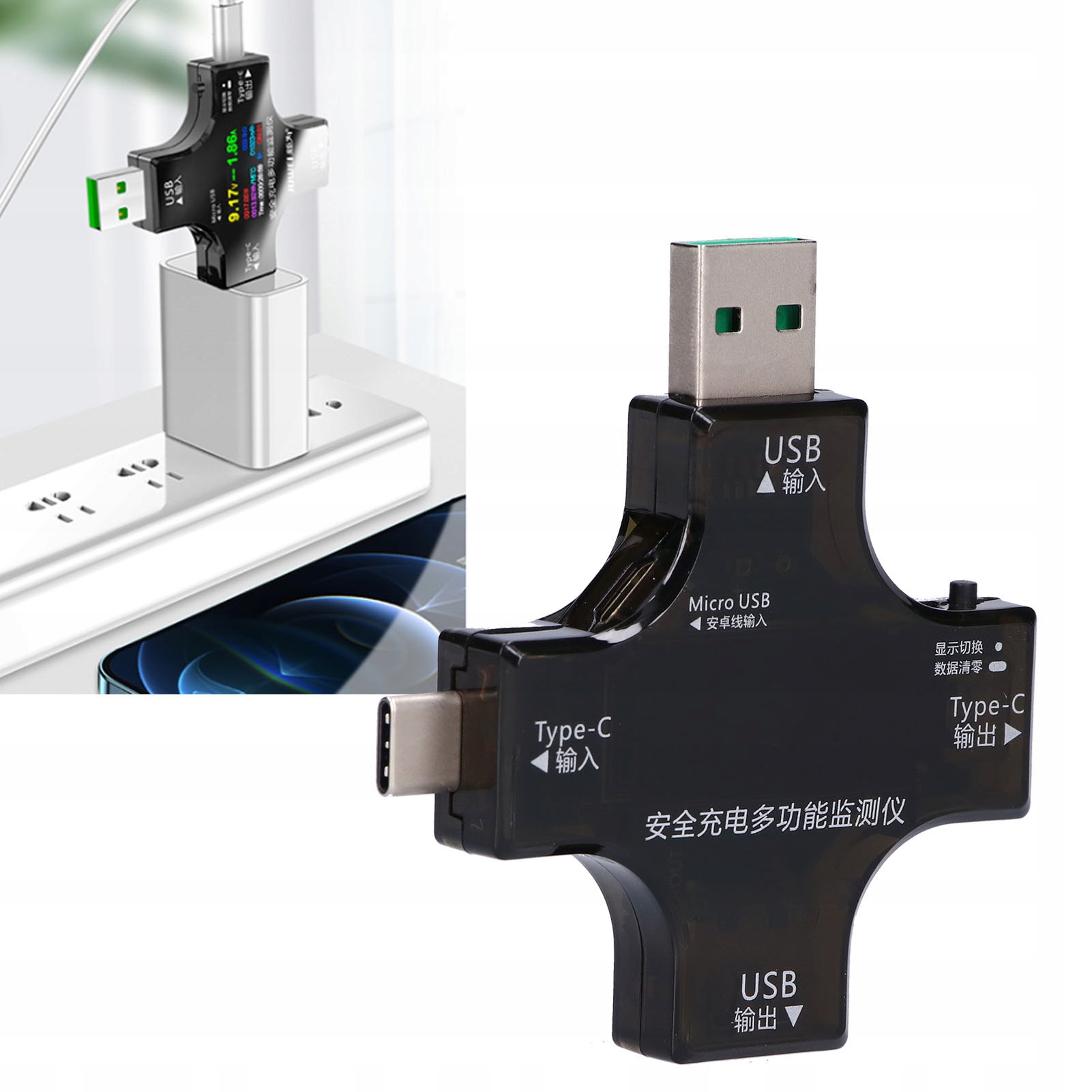 A та гніздо Micro USB. 2. Підтримка швидкої зарядки або флеш-зарядки: тестер підтримує швидке виявлення зарядки різних моделей, таких як Huawei, OPPO, Samsung, і підтримує виявлення флеш-зарядки Huawei FCP (9 В 2 A) SCP (4,5 В 5 A) тощо. 3 Велика практичність: швидко розпізнавання заряджання охоплює майже всі протоколи швидкого заряджання, Qc2.0, QC3.0, включаючи Huawei FCP SCP тощо. 4. Широкий діапазон вимірювань: із широким діапазоном вимірювань напруги, струму, потужності, ємності, температури та імпедансу, що практично . 5. З цифровим РК-дисплеєм: мультиметр оснащено 12800-піксельним цифровим РК-дисплеєм, відображення значення чітке з першого погляду, а тестування зручно.