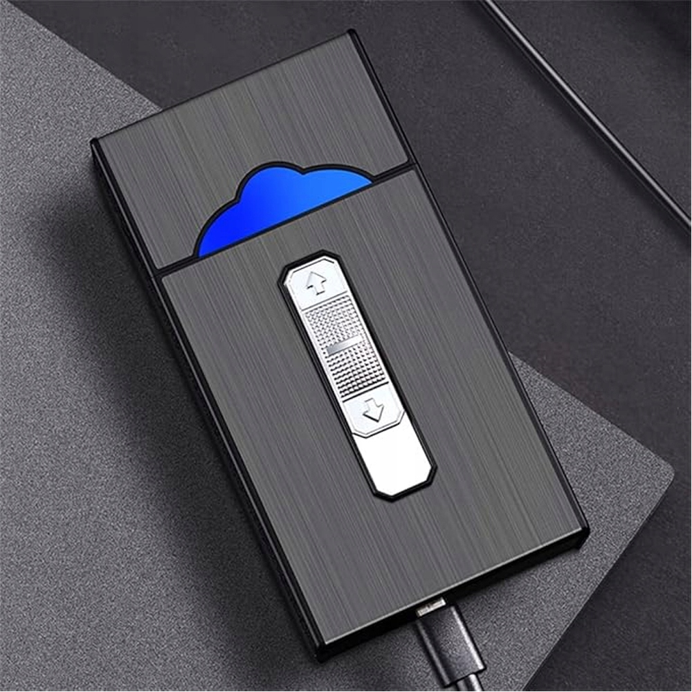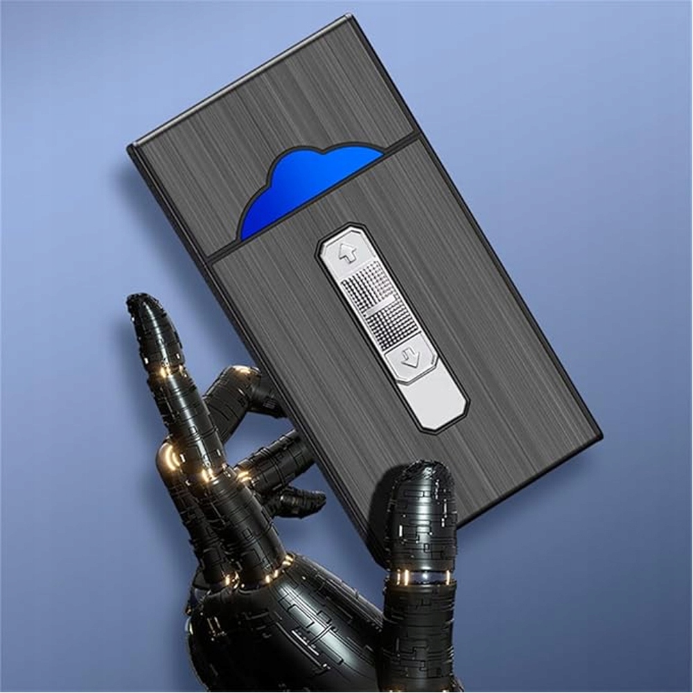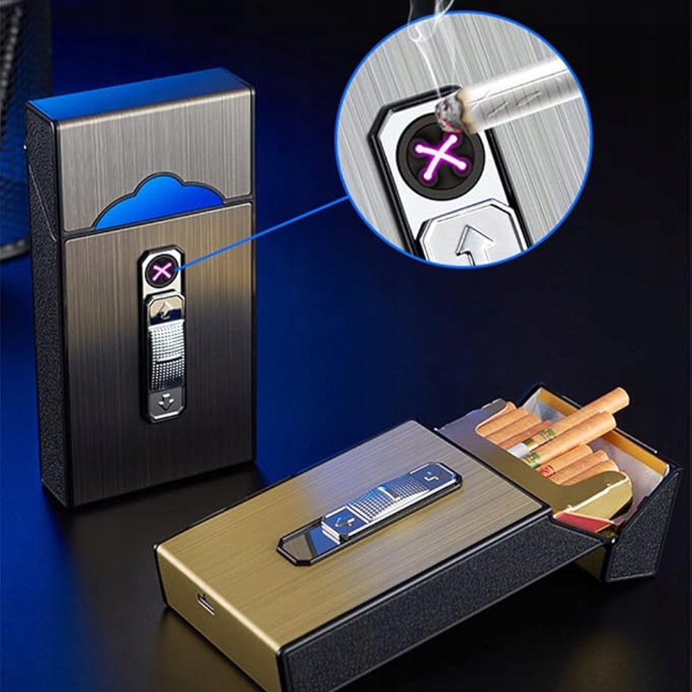 USB ЗАПАЛЮВАЛЬНИК З ПИСГАРЕТНИКОМ МАГНІТНИЙ МЕТАЛЕВИЙ БОКС 20 СИГАРЕТ