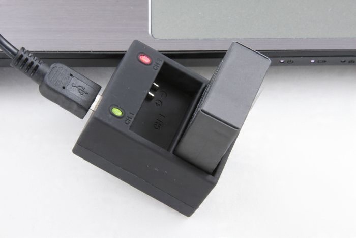 Зарядний пристрій дозволяє заряджати два або один акумулятор для камер GoPro незалежно. Зарядний пристрій розроблено таким чином, що кожен зарядний порт працює незалежно, тому можна заряджати батареї з різними рівнями заряду та ємністю одночасно.