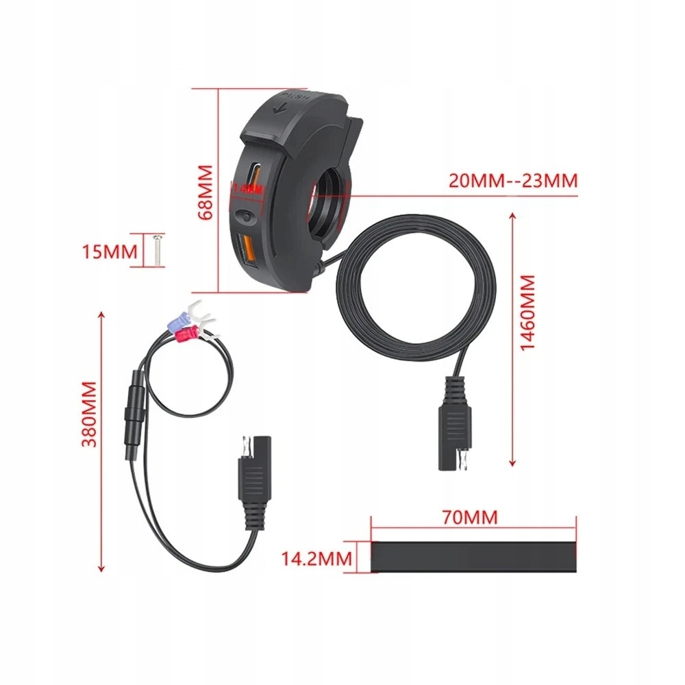 USB-ЗАРЯДНИЙ ПРИСТРІЙ ДЛЯ МОТОЦИКЛА 2X QC3.0 ШВИДКА ЗАРЯДКА USB-C