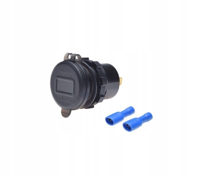 Зарядний пристрій для мотоцикла, призначений для встановлення в обтічник або наповнювач. Живлення: 12В - 24В. Вихід 1 x USB QC 3.0 + 2 x USB-C. Дисплей і перемикач напруги. Синє світлодіодне підсвічування.