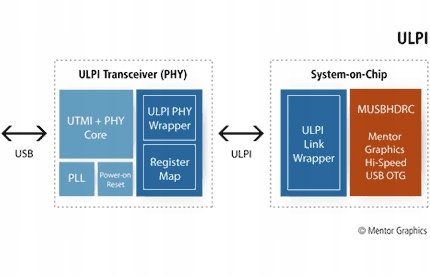 На відміну від повношвидкісних/низькошвидкісних систем USB, які використовують послідовні інтерфейси, висока швидкість вимагає паралельного інтерфейсу між контролером і PHY для роботи шини зі швидкістю 480 Мбіт/с Мбіт/с. Це призводить до відповідного збільшення складності та кількості шляхів. ULPI обмежує це лише 8 або 12 сигналами, оскільки він підключає лише три керуючі сигнали, а також годинник, до 4- або 8-бітної двонаправленої шини даних.