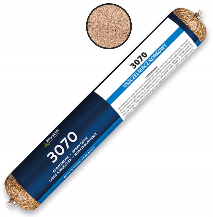 Дюшова пробка BOSTIK 3070 - це однокомпонентний і пластично міцний продукт. Велика кількість заповнених повітрям комірок у коркових гранулах робить його ізоляційним матеріалом, який зменшує потік тепла та холоду та забезпечує чудову акустичну ізоляцію.