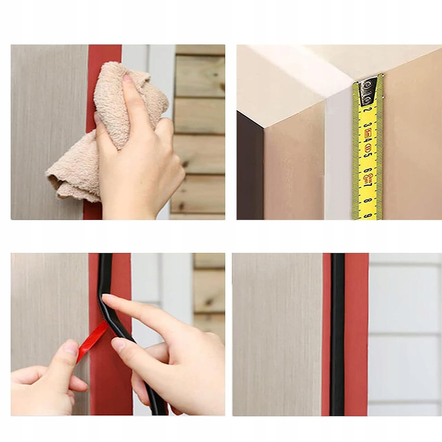 ✅ Як використовувати: Під час встановлення ущільнювача дверної рами переконайтеся, що дверні та віконні рами очищені від пилу та води, потім нанесіть клей і зачекайте п’ять хвилин, а потім відірвіть міцний клей і приклейте його до дверної та віконної рами. Стрічку шаблону слід притискати кілька разів під час встановлення, щоб отримати найкращу адгезію.