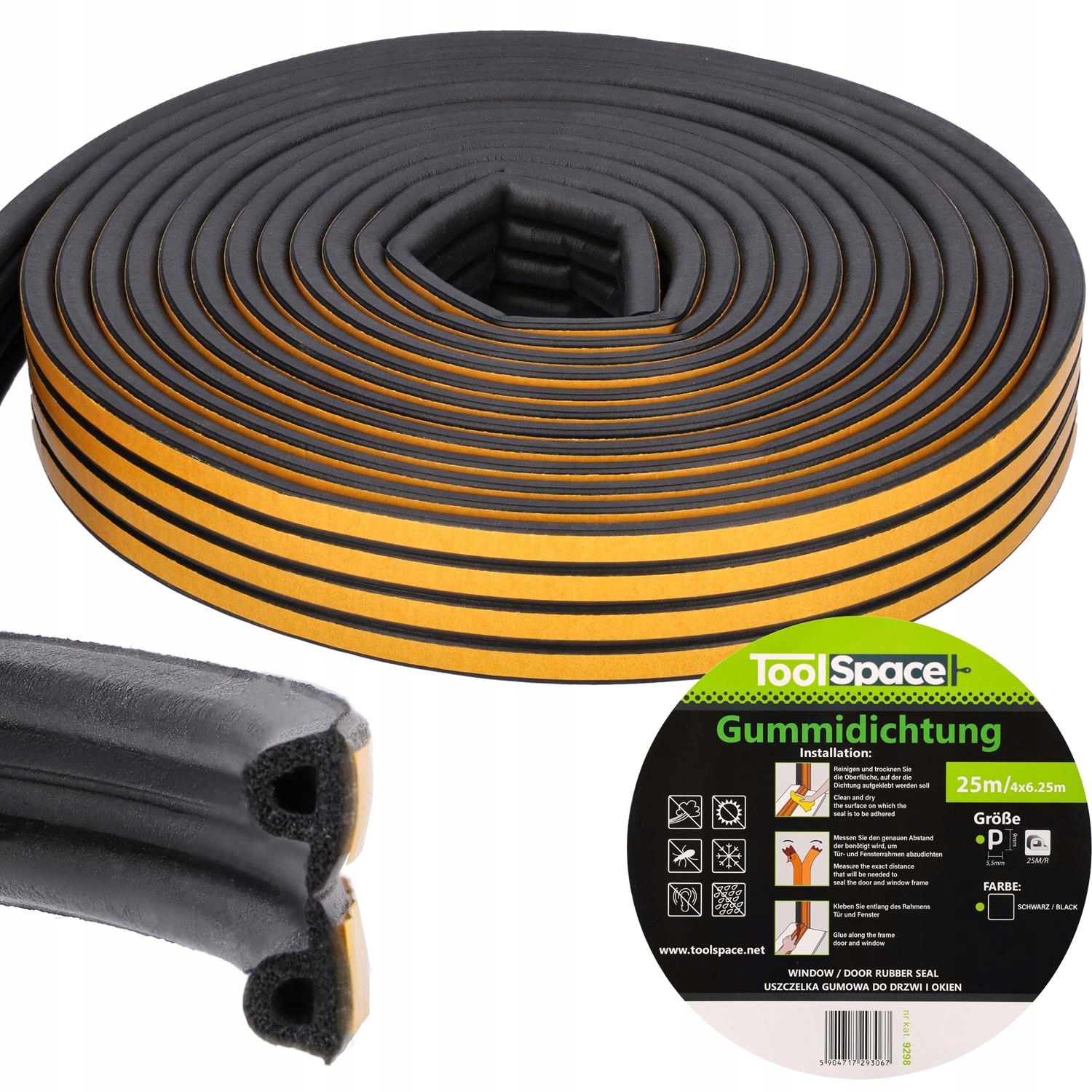 Самоклеючий гумовий ущільнювач для вікон і дверей Type P ToolSpace