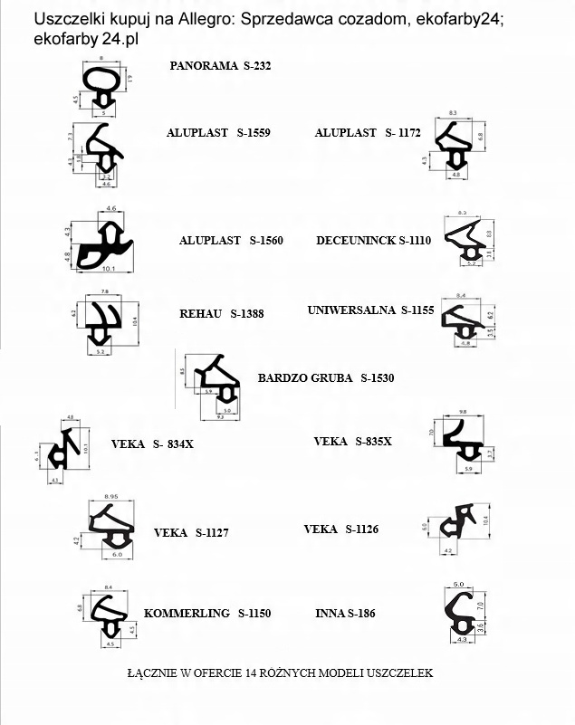 14 моделей ущільнювачів для вікон ПВХ - ущільнювачі виробництва STOMIL SANOK.