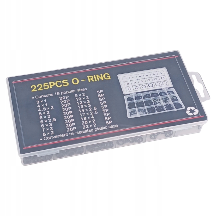 - Набір прокладок 225 шт. - Універсальні ущільнювальні кільця 3-22 мм - Ущільнювальні кільця - 1 комплект