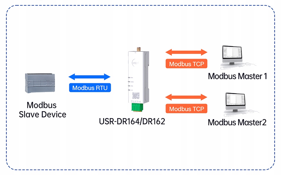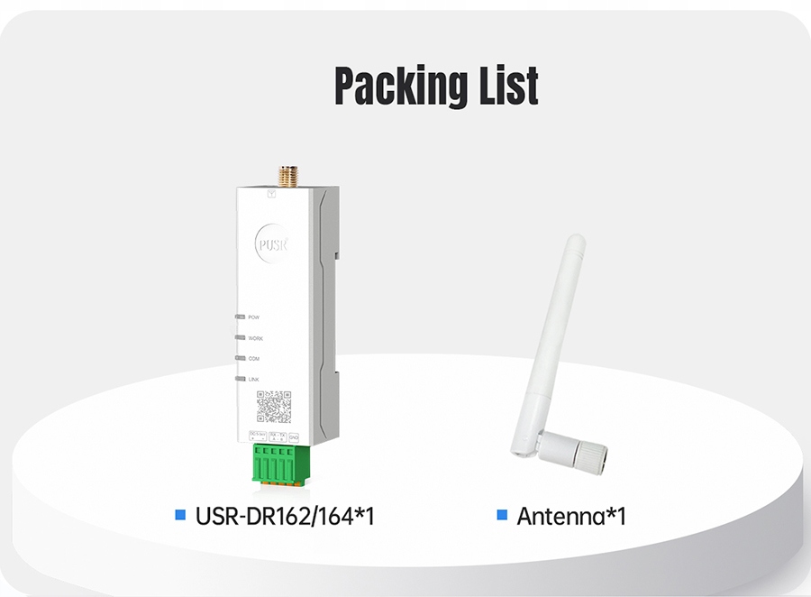 - Серіальний порт: usr-dr164: 1 x rs485, 3 з'єднувач. Частота передач: 1200-460800 bps