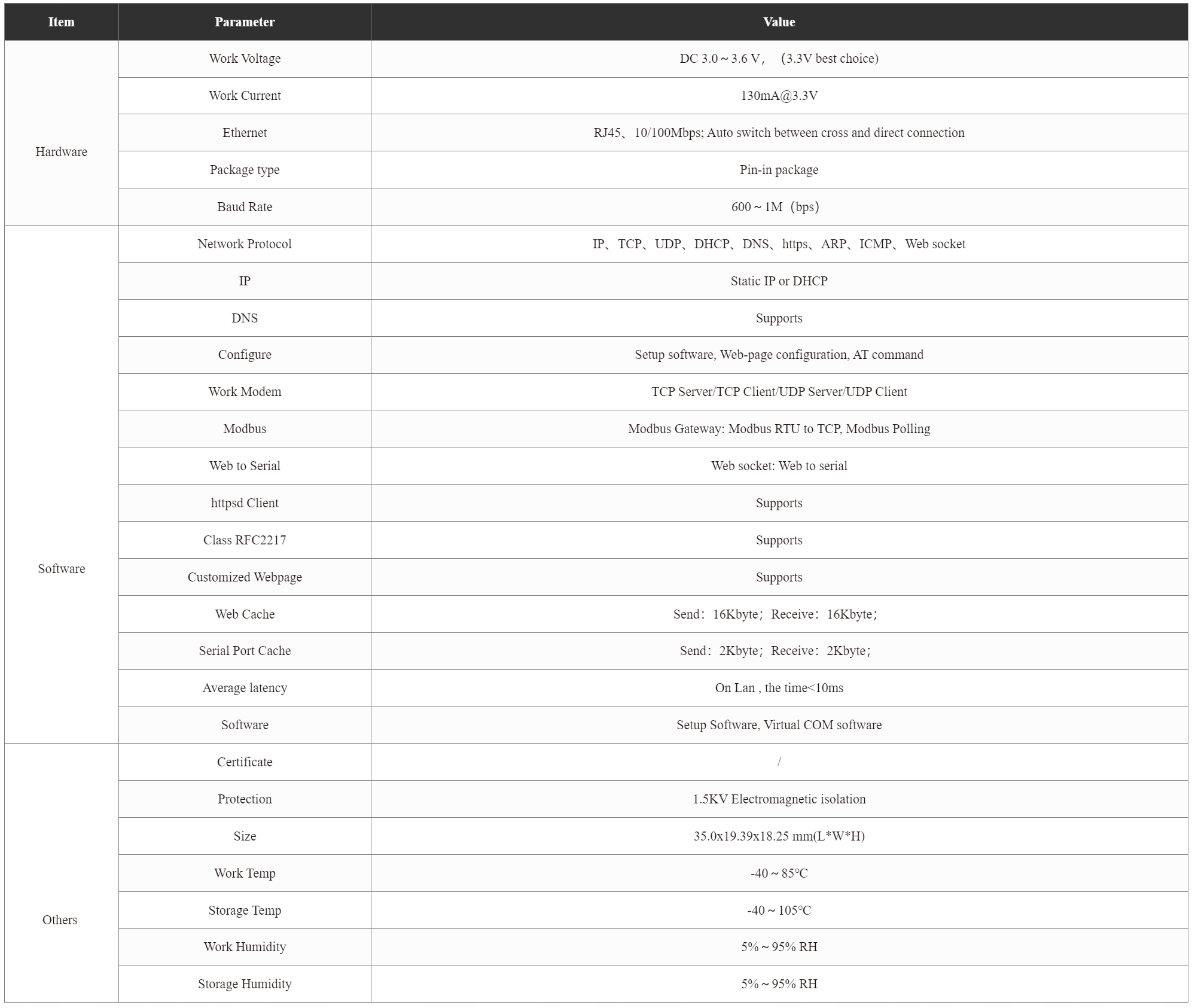 Модуль суперпорту K7 — це новий послідовний модуль Ethernet, який забезпечує передачу даних між мережею та послідовним портом TTL. Цей модуль оснащений процесором ARM Cortex-M4, який характеризується низьким енергоспоживанням, високою швидкістю та високою стабільністю. З точки зору розмірів, ширина пристрою дорівнює звичайному порту RJ45, а довжина менша за довжину звичайного мережевого порту, що призводить до найменшого розміру на ринку. Струм, який споживає пристрій, становить лише 130 мА на повній швидкості. Цей продукт розроблено на основі апаратного та програмного забезпечення послідовного Ethernet серії M4. Внутрішня інтеграція стека протоколів TCP/IP дозволяє користувачам легко завершувати вбудовані мережеві можливості, заощаджуючи час і кошти на розробку, а також забезпечуючи швидший час виходу на ринок і підвищення конкурентоспроможності.