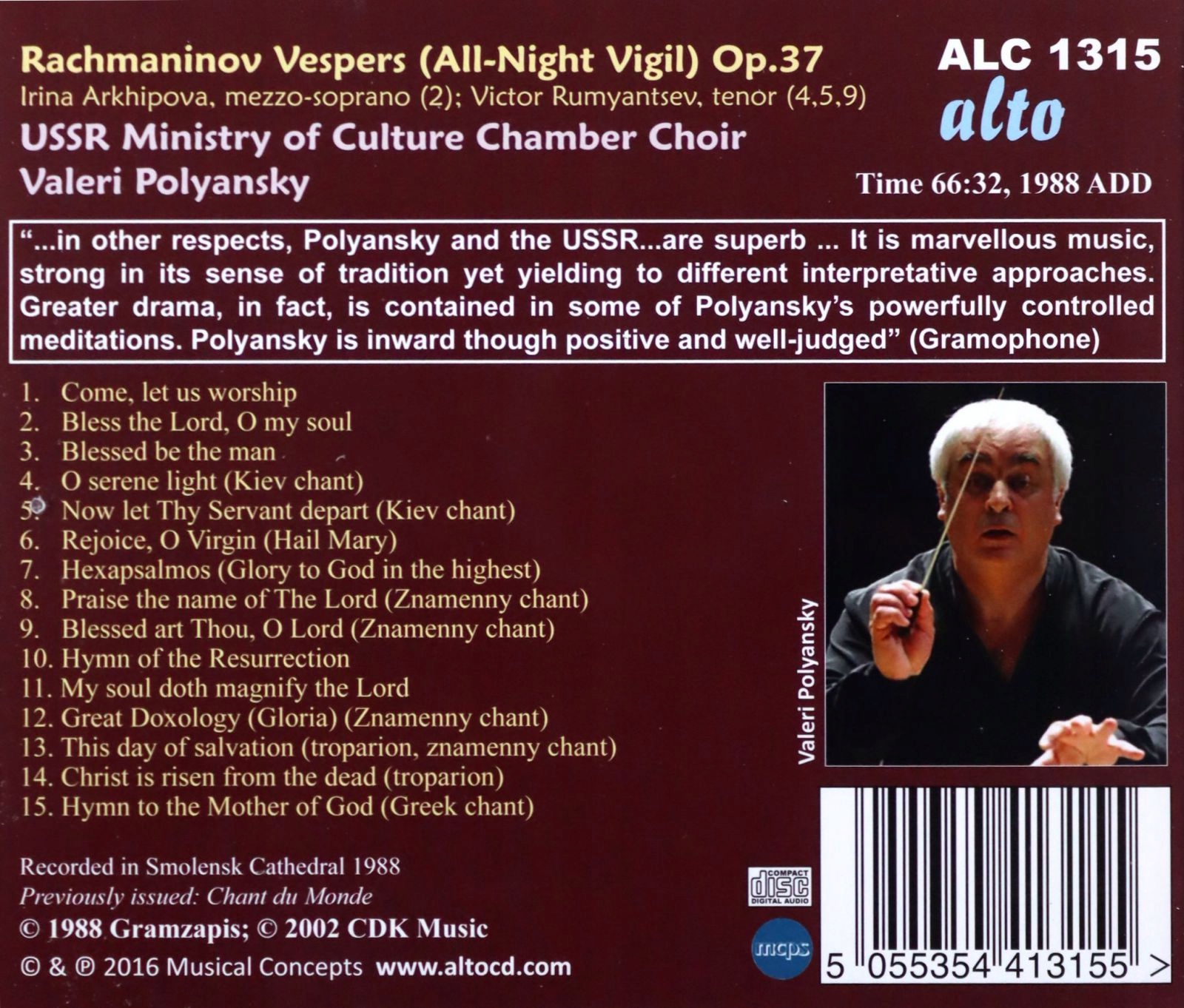 USSR CHAMBER CHOIR+POLYANSKY: RACHMANINOV VESPERS