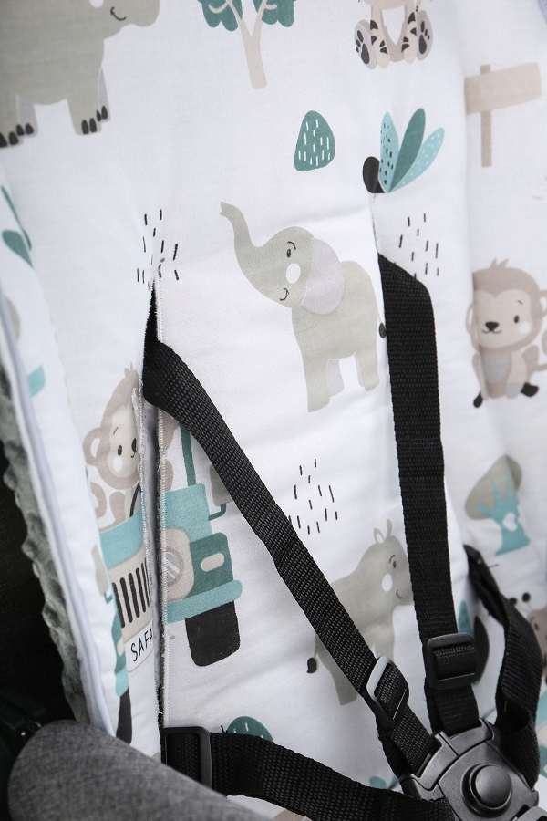 Наша вставка була розроблена з безпекою. Спеціальні живці на ременах дозволяють їм безпечно застішити навіть у моделях коляски з нероздільними ременями, що дає батькам відчуття повного захисту для своєї дитини.