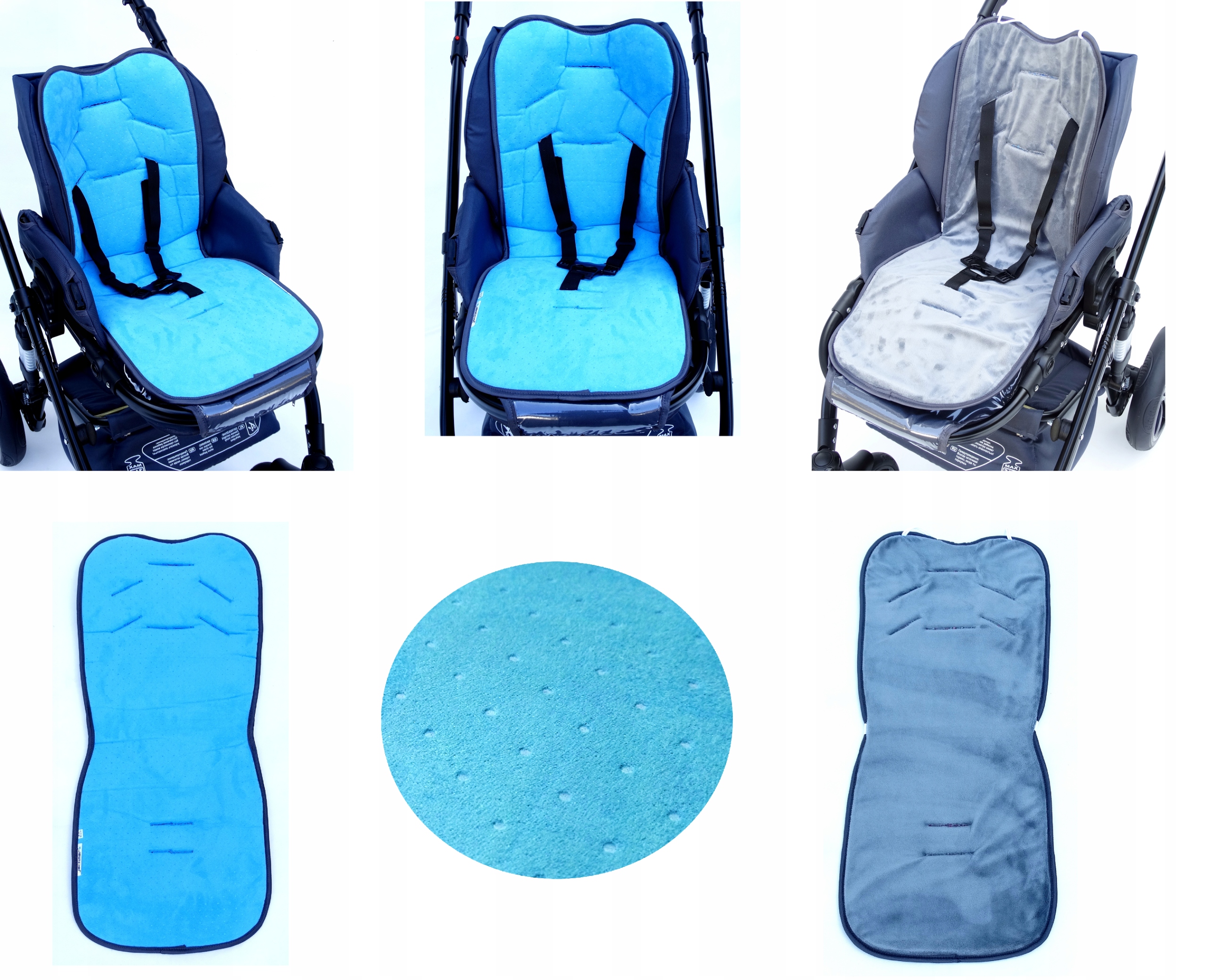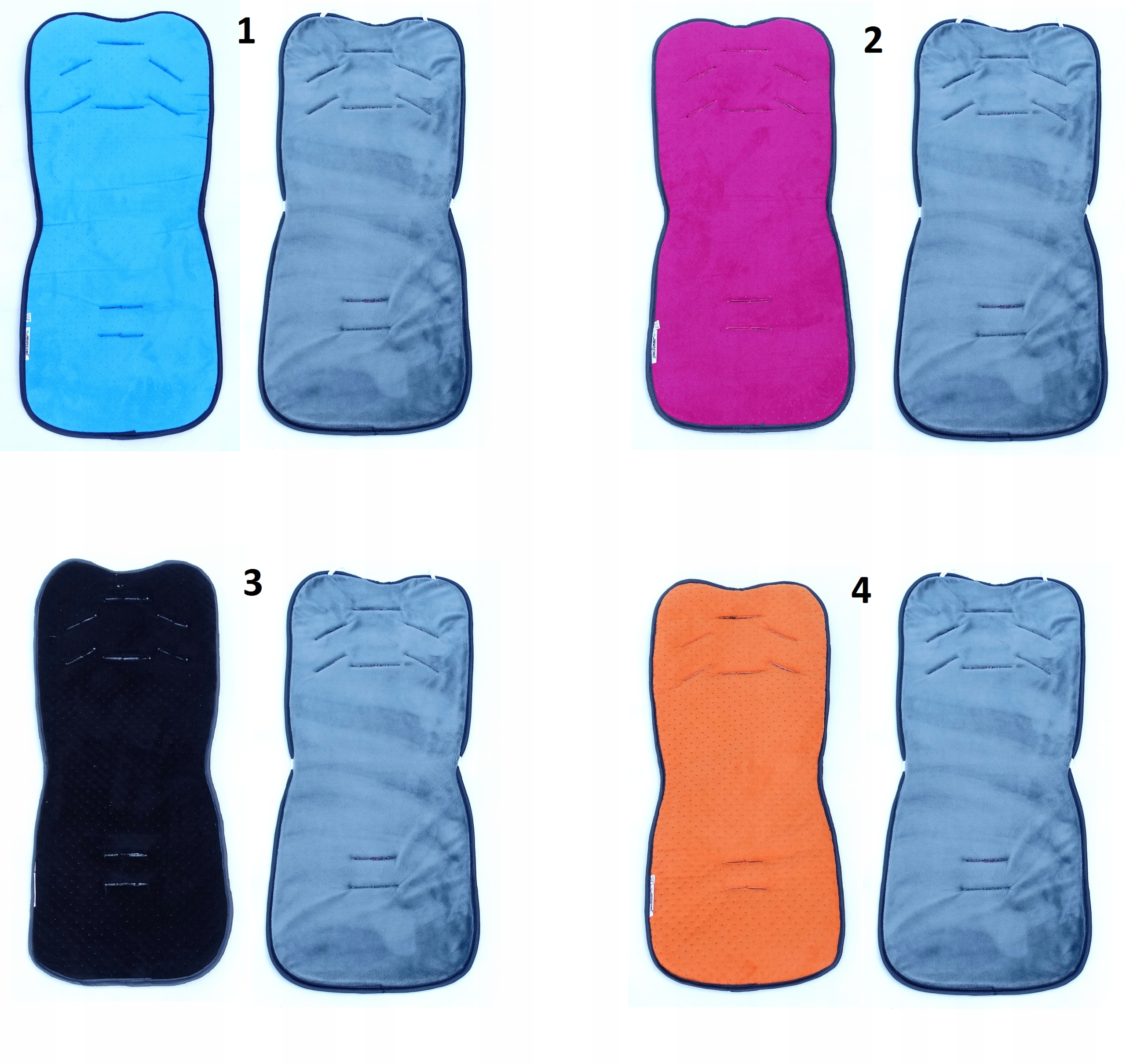 Кожна вставка має вшиту гуму, завдяки якій ми можемо прикріпити її до рами коляски або сидіння, щоб уникнути ковзання по сидінню.