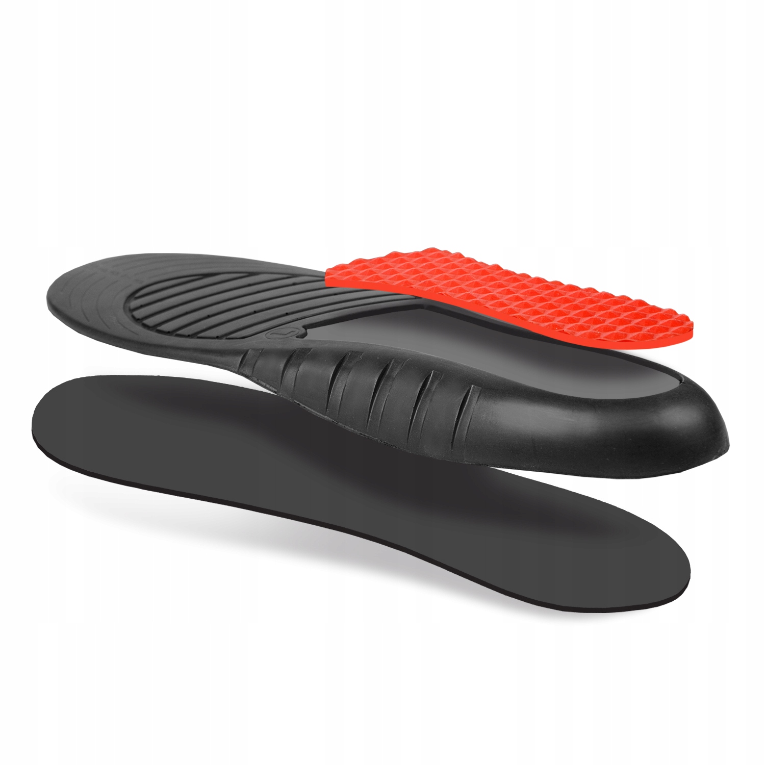 - Червона гелева вставка з стільниковим різьбленням поглинає мікроудари, що виникають під час ходьби.