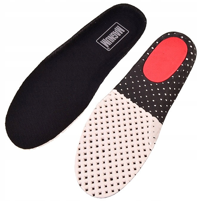 Ергономічні вставки з поролону, обтягнутого тканиною. Завдяки використанню двох твердостей підвищився комфорт використання. Перфорація спереду підвищує повітропроникність. Insole - це практичні вкладиші для взуття, які підходять як для повсякденного використання, так і для подорожей. Додаткова амортизація під п'ятою амортизує удари. Призначений для спортивного та трекінгового взуття.