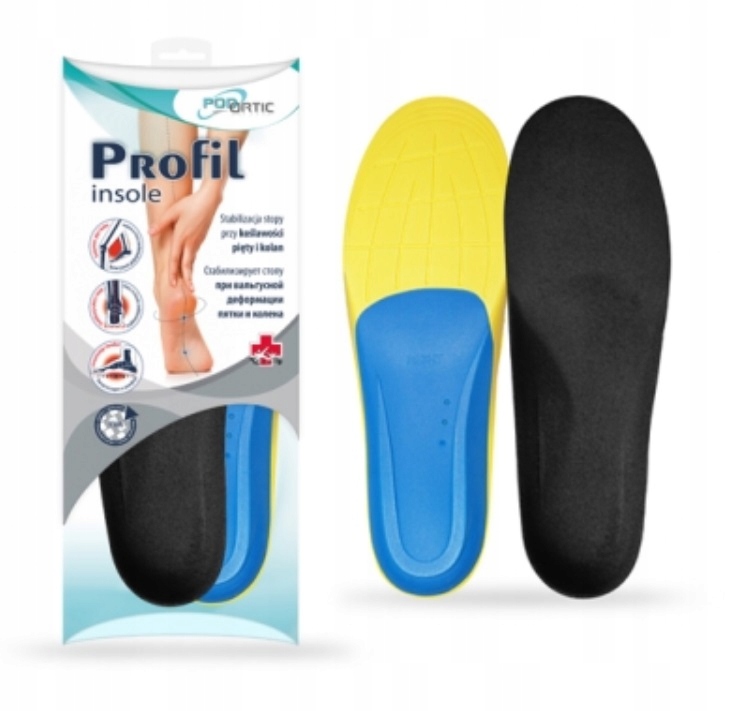 Профільовані устілки з глибоким п'ятковим каналом Виготовляються з двох шарів поролону різної щільності, покритих оксамитовим матеріалом. Вони сильно стабілізують п'яту і підтримують правильне положення стопи під час ходьби. Крім того, вони мають профіль задньої та середньої частини стопи та міцно супінують п’яту. Піднятий медіальний звід підтримує склепіння стопи, знижуючи навантаження при ходьбі. Завдяки канальній структурі вони захищають гомілковостопний суглоб від вальгусу гомілковостопного суглоба, запобігають вальгусу п’яти та коліна. Вони правильно розташовують плосковальгусні стопи. Вони поглинають мікроудари, стимулюють динамічну роботу м'язів і зв'язок.