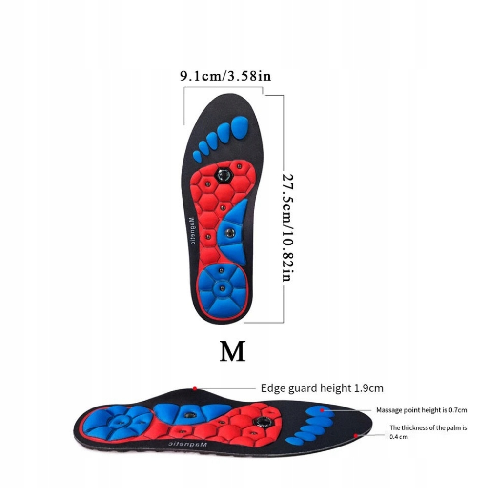 ✨Накладки для масажу магнітні M 27,5 см EU 40–44. Вони покращують кровообіг і амортизують стопи.