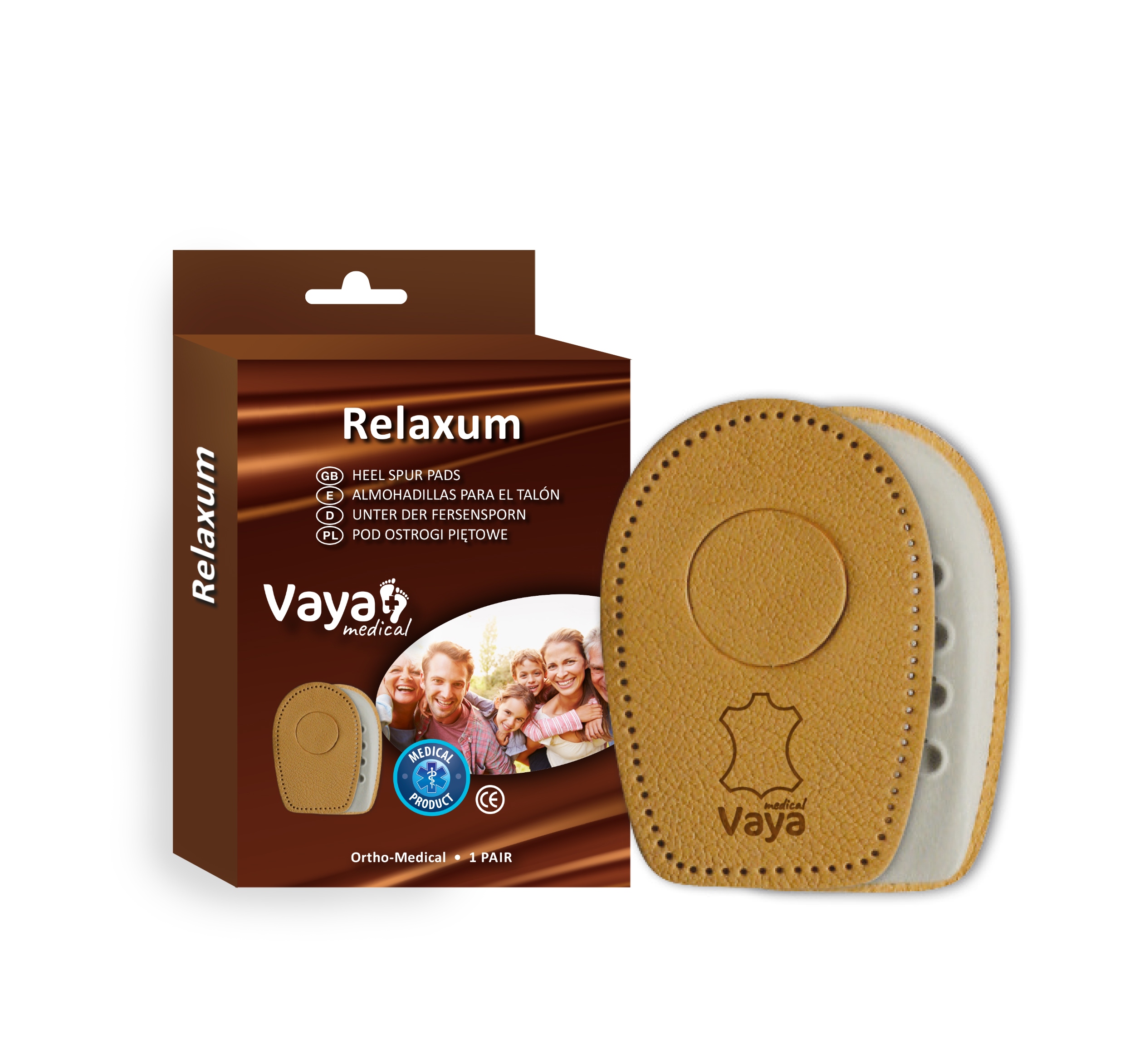 Подушки для п’яткової шпори Vaya Relaxum призначені для людей, які страждають від захворювання під назвою «п’яткова шпора». Це дуже якісні шкарпетки на підборах, виготовлені з зернистої овчини та нижній шар RelaxFlex - з натурального латексу. У центральній частині п'яти є знімний круглий елемент.